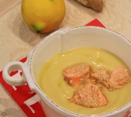 Crema di pastinaca con zenzero e salmone scottato croccante. Ingredienti: 200 gr di pastinaca 2 patate 1 filetto di salmone norvegese 1 radice di…