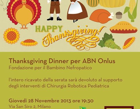 Vanilla Bakery ha il piacere di invitarvi al nostro Thanksgiving Dinner per ABN Onlus Fondazione per il Bambino Nefropatico L’intero ricavato della serata…