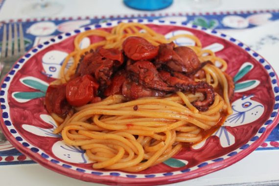 Ingredienti: 500 gr di Spaghettoni Vicidomini 1 kg di polipetti 400 gr di polpa di pomodoro 2 spicchi di aglio peperoncino sale In un…