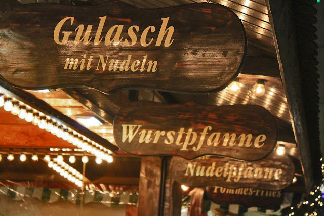 E quindi currywurst, ma anche raclette, pizza e schnitzel. Il tutto inondato di birra, tazze di vin brulè e composti altamente alcolici e bollenti.